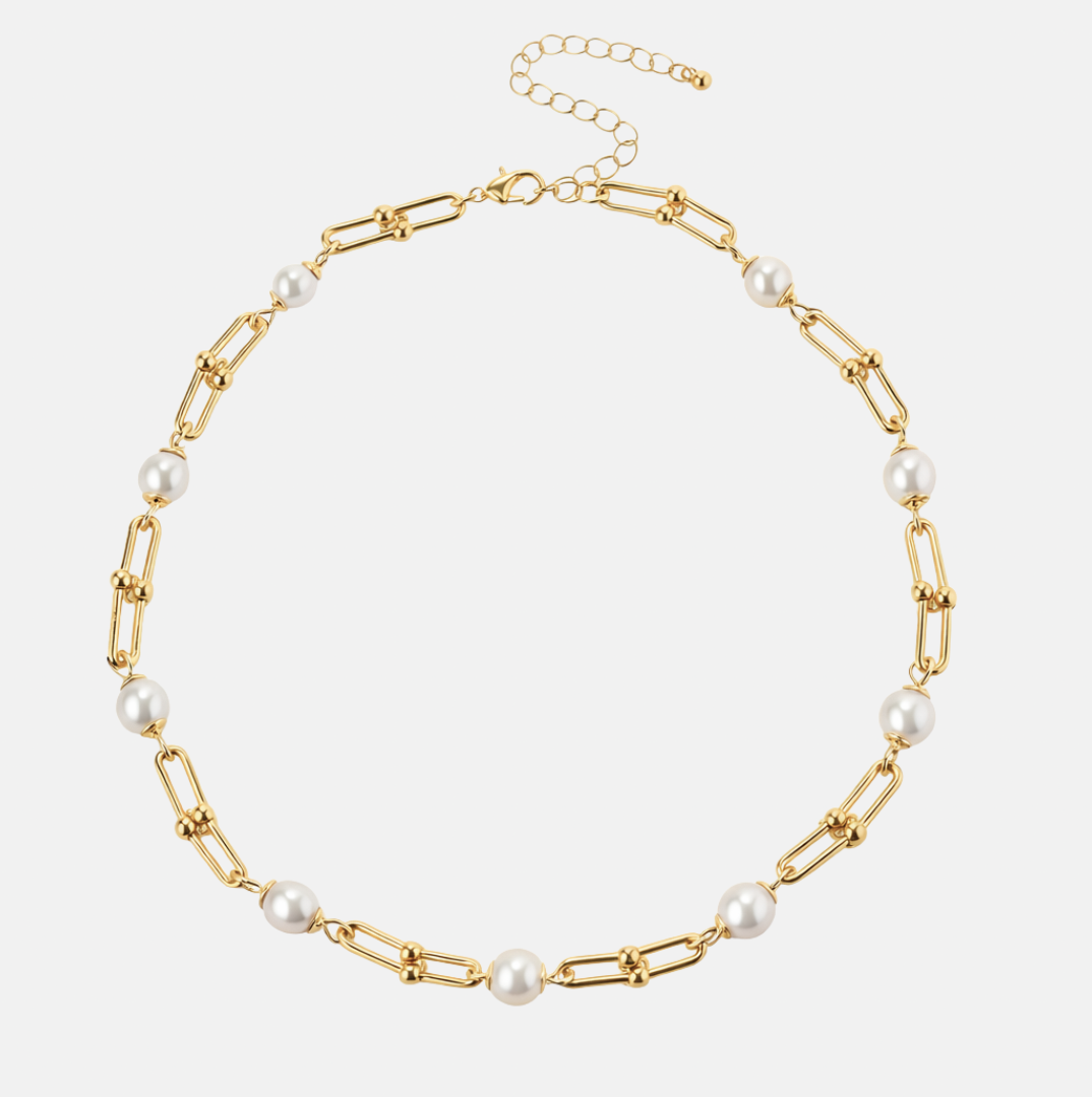 Gold Plated Pearl & Blue Iolite Stone Necklace