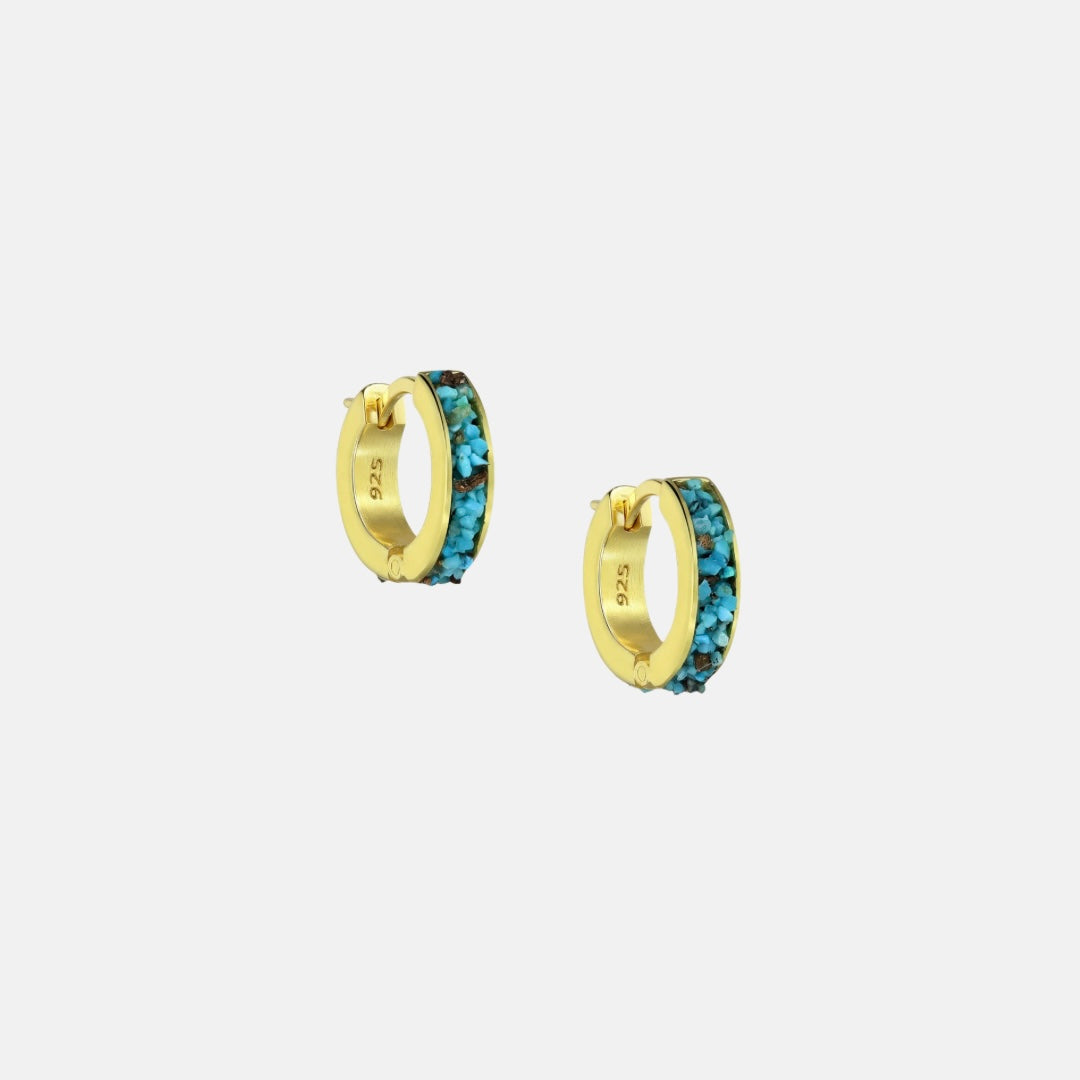 Add a touch of handcrafted luxury to your look with these stunning Gold Hoops, featuring reconstructed Copper Turquoise.