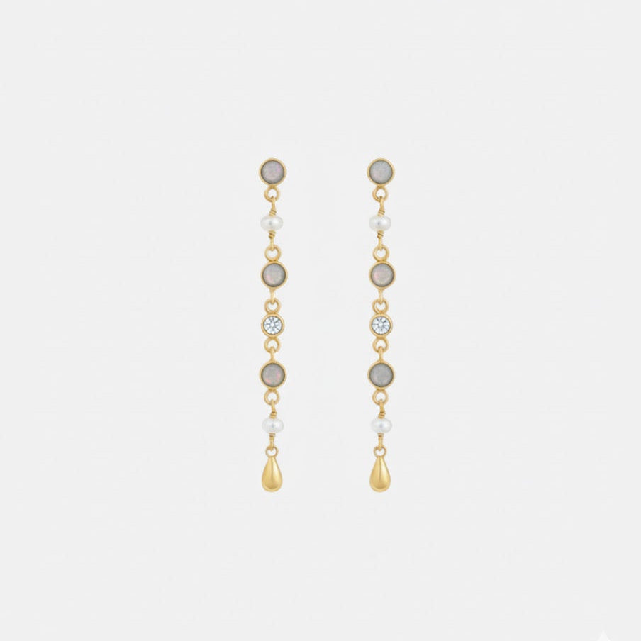 Labradorite Pearl Long Dangly 18ct Gold Plated Drop Earrings