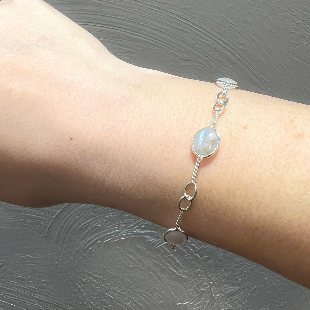 Cabochon Gemstones & Sterling Silver Link Bracelets - Moonstone