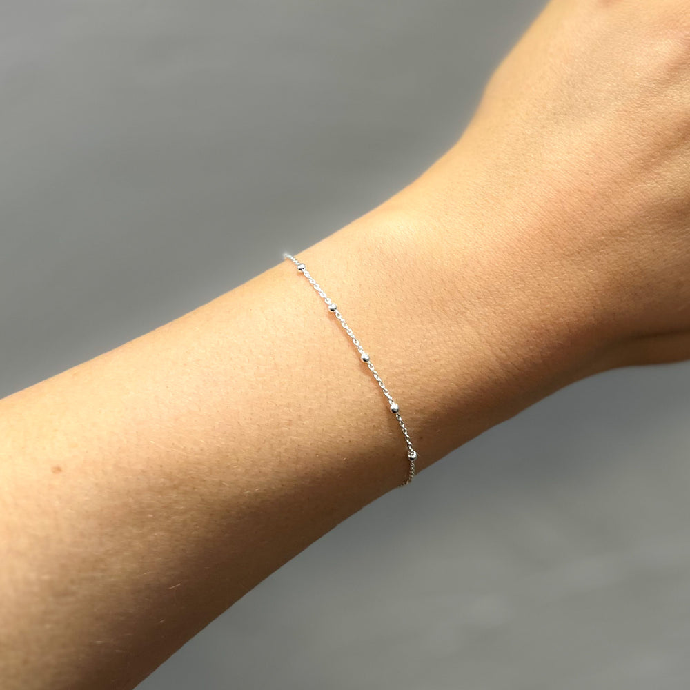 Sterling Silver Dainty Ball Bracelet - Heart Charm | Pearl Charm