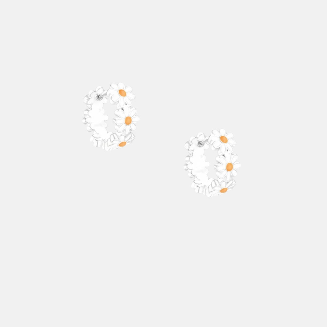 Lani Mother of Pearl Clover Charm Huggie Hoop Earrings - Steel | Gold Steel