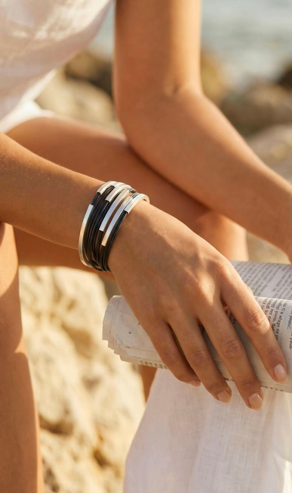Layered Nica Bracelet - Silver + Light Grey